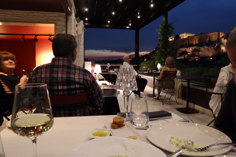 As you pore over the menu, you can bask in the glory of Athens’ quintessential monument, The Acropolis, seen below from the outdoor patio.