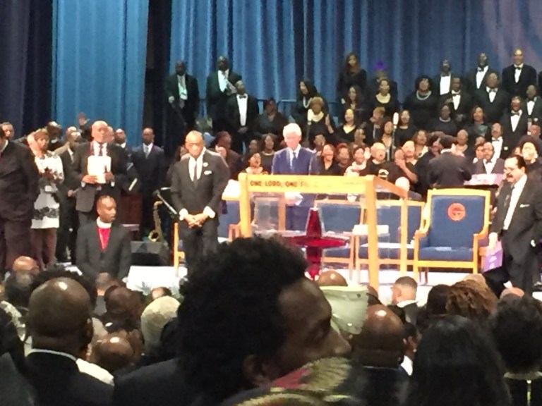 Once inside, numerous individuals took to the pulpit to speak about the Queen of Soul and her legacy. Among them: Reverend Jesse Jackson, Reverend Al Sharpton, Professor Michael Eric Dyson, Congresswoman Brenda Lawrence, Recording Executive Clive Davis, Detroit Mayor Mike Duggan and President Bill Clinton.