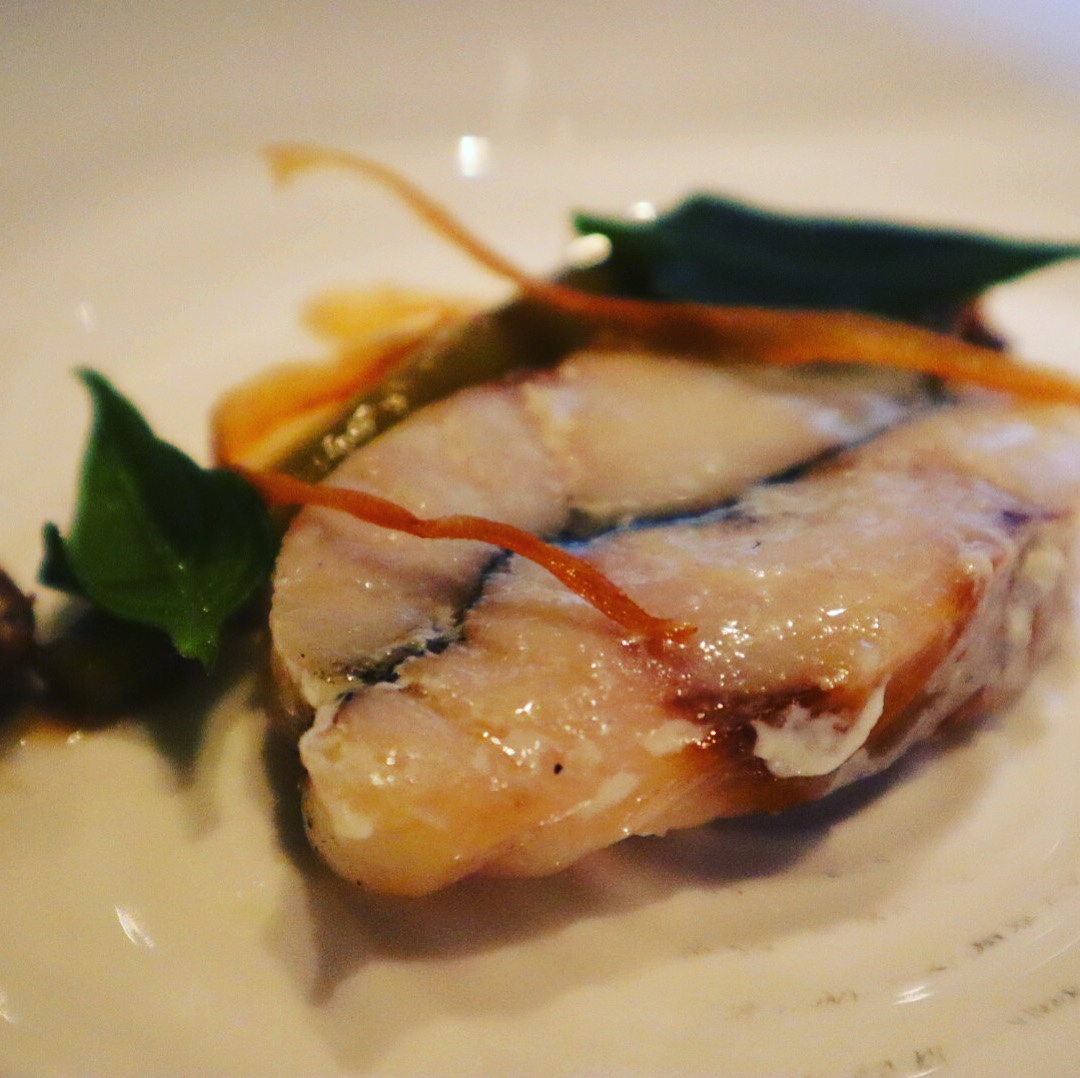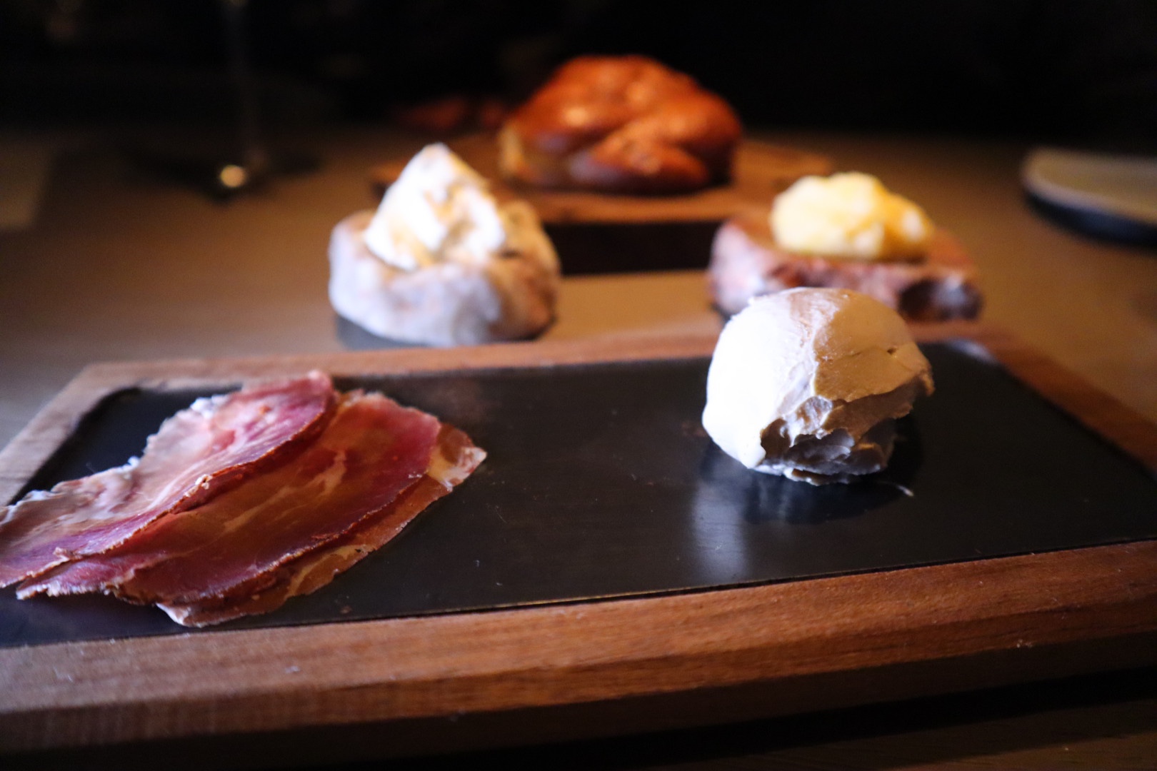 Next, two types of butter accompanied brioche rolls. One made with milk from grass-fed cows in Patagonia; the other made from Dutch cow milk. It was referred to a “blue butter” because it undergoes a fermentation process similar to that of blue cheese.
