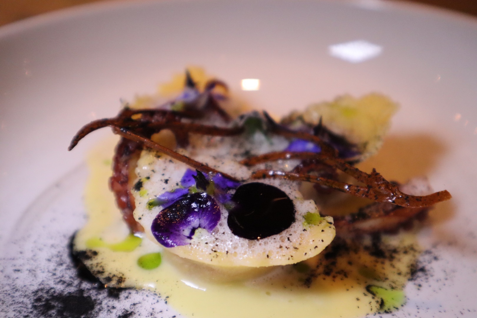 Next, I was tantalized by Pasta Tortellini filled with fish from the Parana River in Northeast Argentina. Octopus tentacles from a South Argentinian region accompanied the dish. Chips made of black garlic and potato garnished the dish, which was simultaneously soft, chewy, crunchy and sweet.