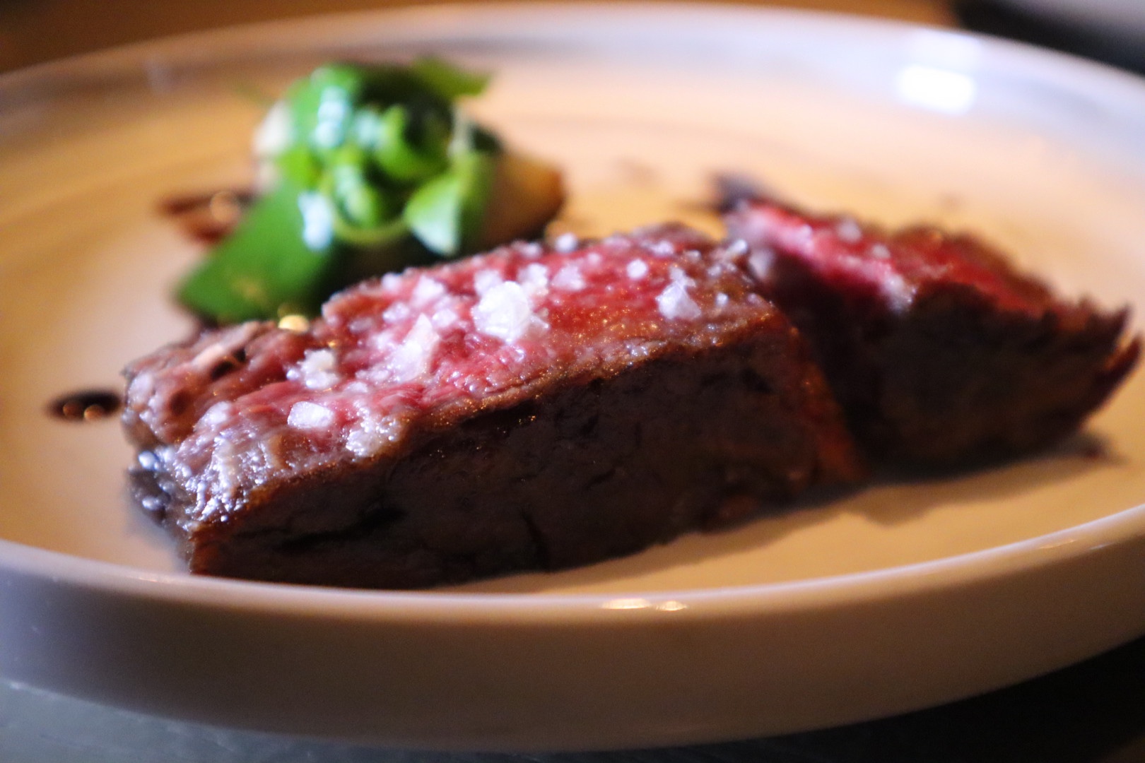 Dry-aged beef arrived at our table with roasted in a celery and coriander sauce with spinach.