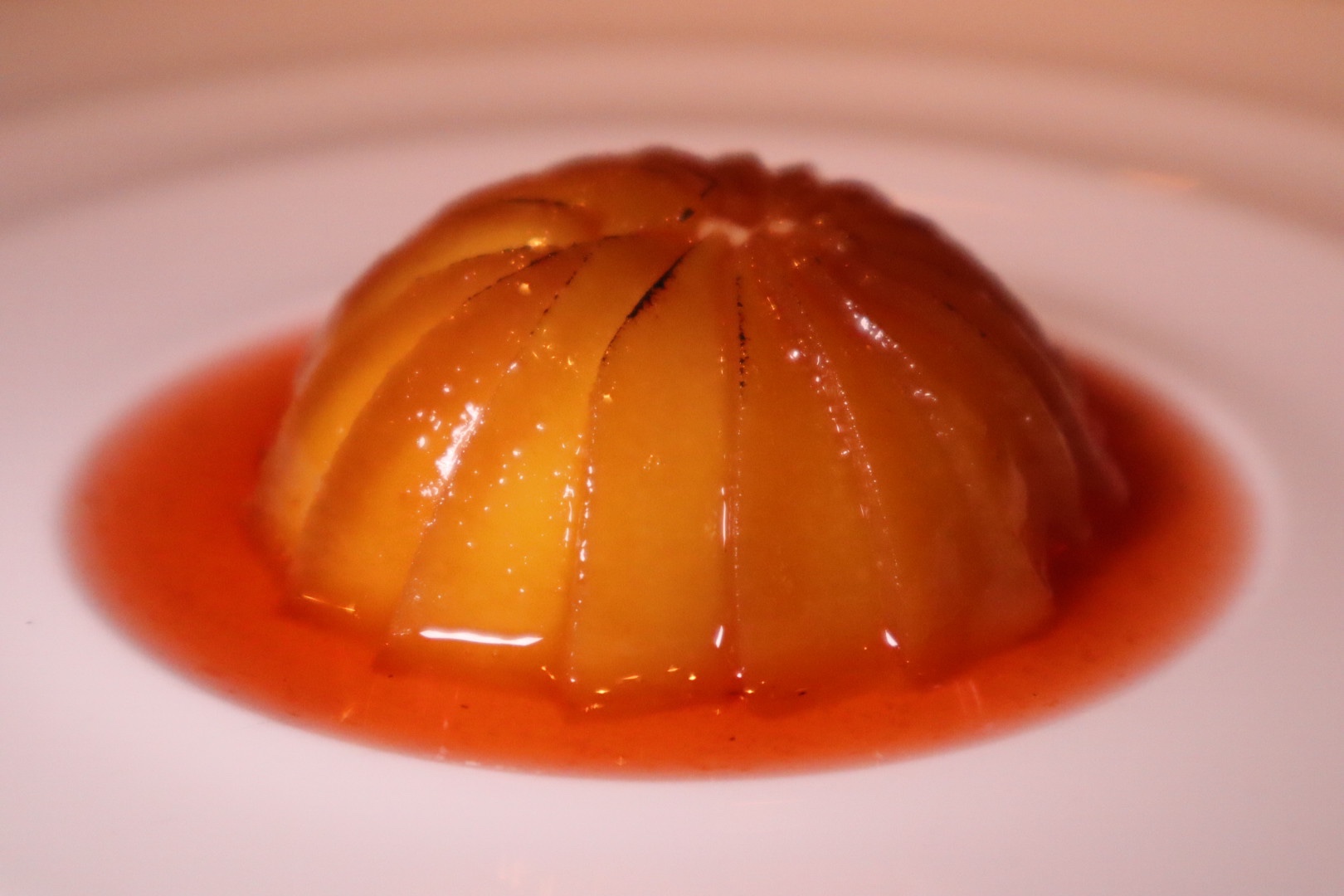 That was followed by slivers of caramelized quince (known in Spanish as “membrillo”) in the form of an up-side down cone, covering a lime, lemon and orange sorbet.