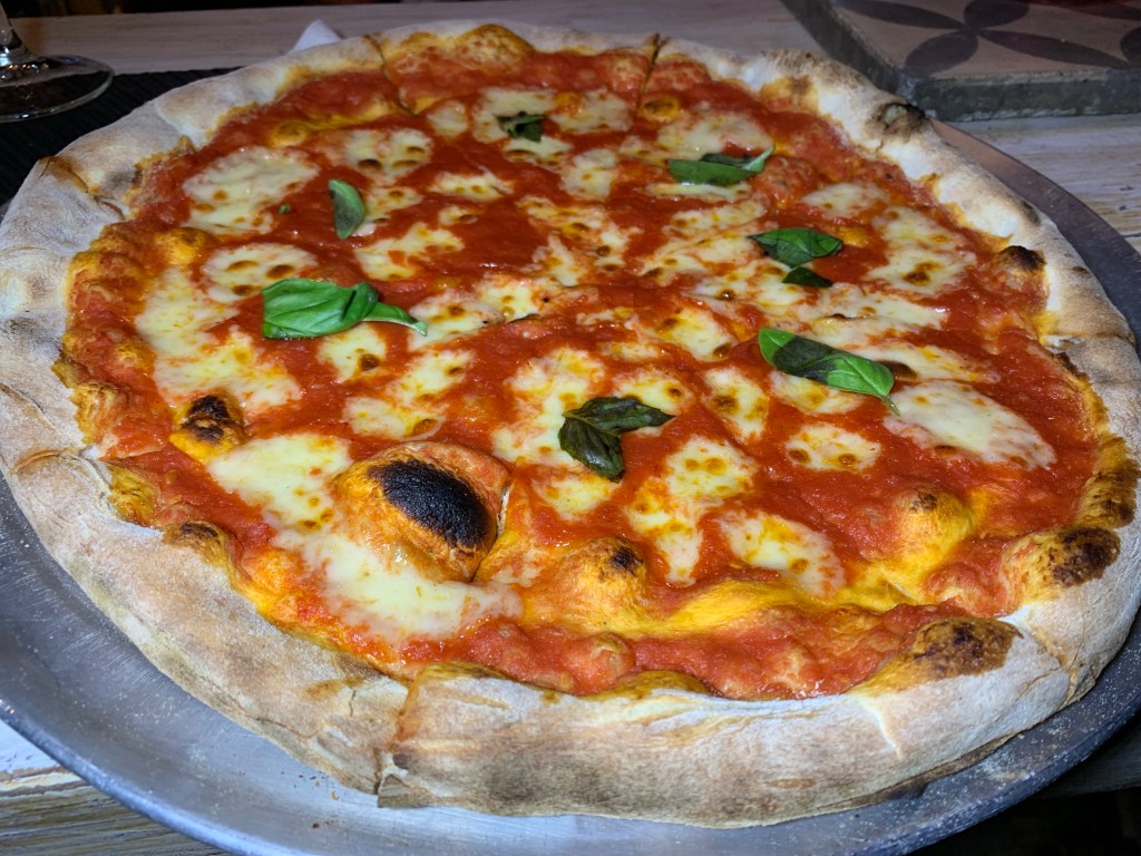 And to finish off, we ate a Margherita pizza, prepared in a wood-burning oven. The crust was deliciously thin and nicely charred without being burnt black. The tomato sauce, mozzarella cheese and basil leaves that topped the pizza were all fresh.